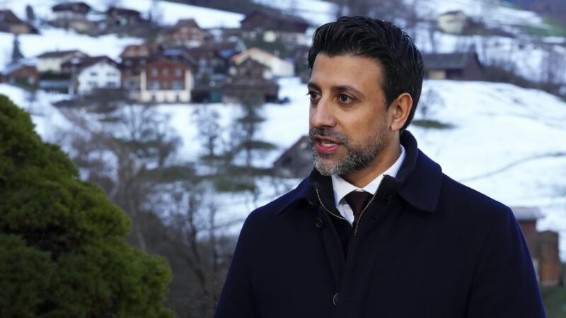 متحدثاًً في مقابلة صحفية في دافوس في سويسرا